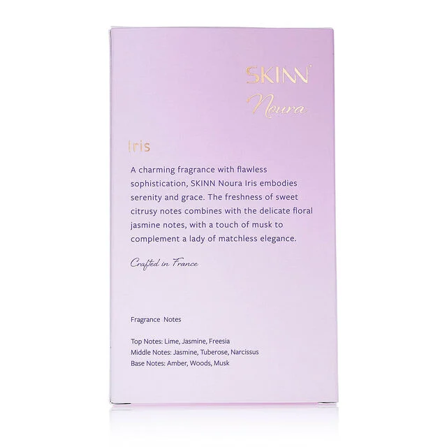 A charming fragrance with flawless sophistication, SKINN Noura Iris embodies serenity and grace. The freshness of sweet citrusy notes combines with the delicate floral jasmine notes, with a touch of musk to complement a lady of matchless elegance.