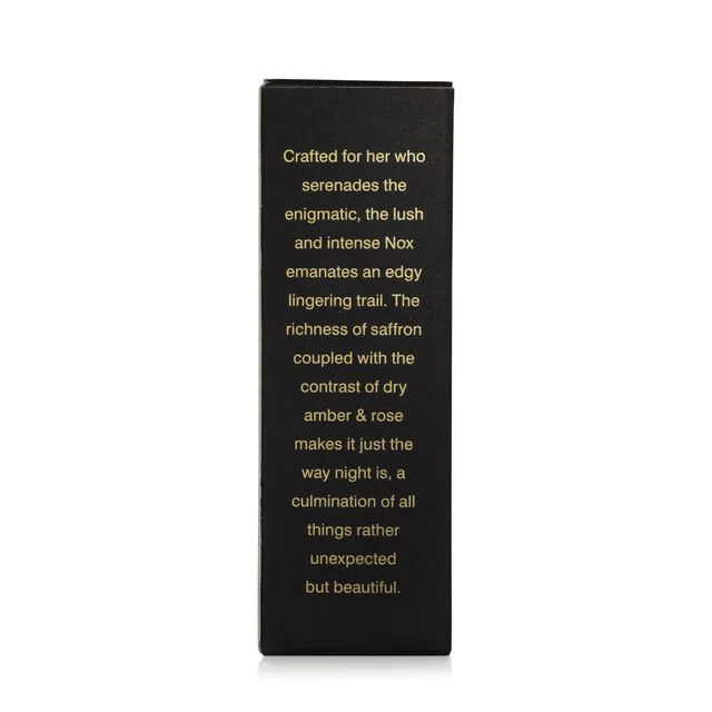 Crafted for her who serenades the enigmatic, the lush and intense Nox emanates an edgy lingering trail. The richness of saffron coupled with the contrast of dry amber & rose makes it just the way night is, a culmination of all things rather unexpected but beautiful.